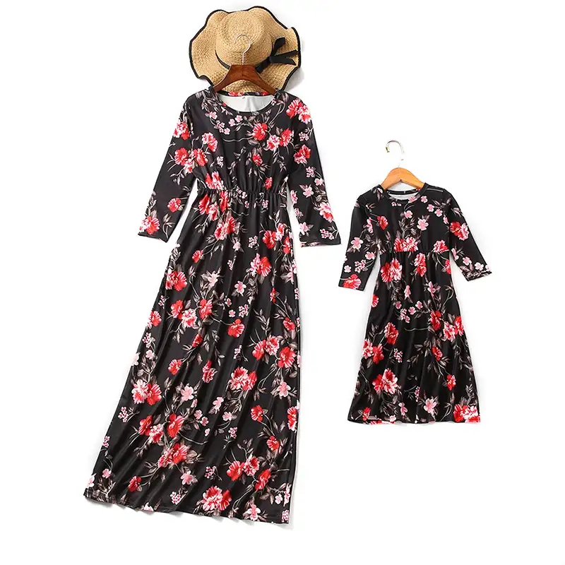 Crna cvijetna haljina za žene i djevojčice
