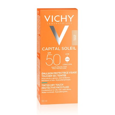 VICHY CAPITAL SOLEIL BB Tonirani Dry Touch Fluid za zaštitu od sunca za mješovitu do masnu osjetljivu kožu SPF50, 50 ml