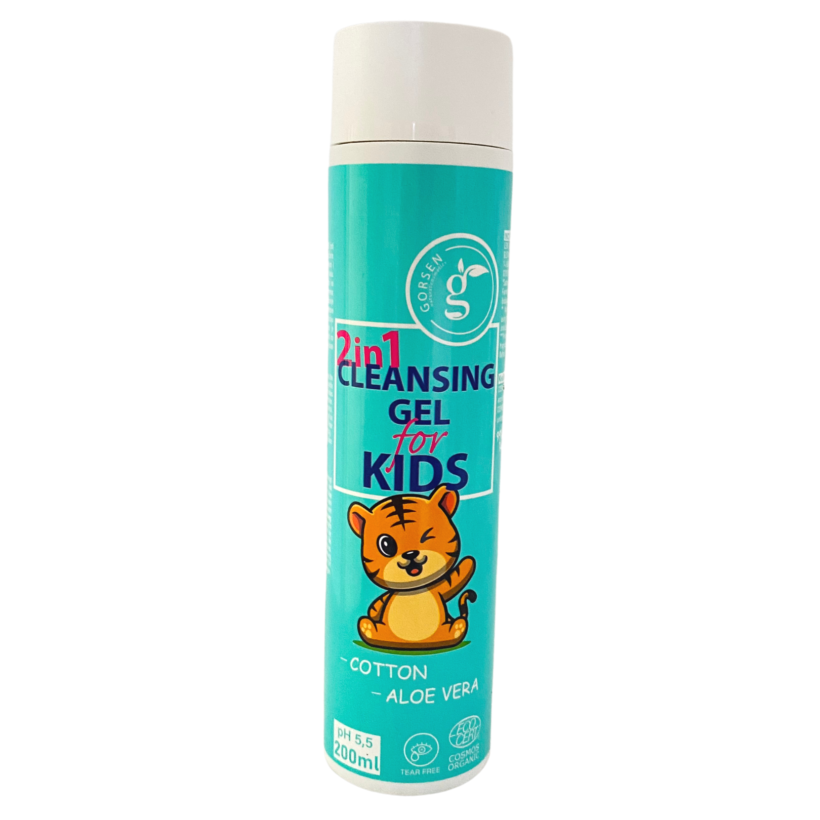 Gorsen 2 u 1 CLEANSING GEL FOR KIDS čisti lice, tijelo i kosu novorođenčadi i djece. Njegova nježna formula s pamukom i aloe verom štiti