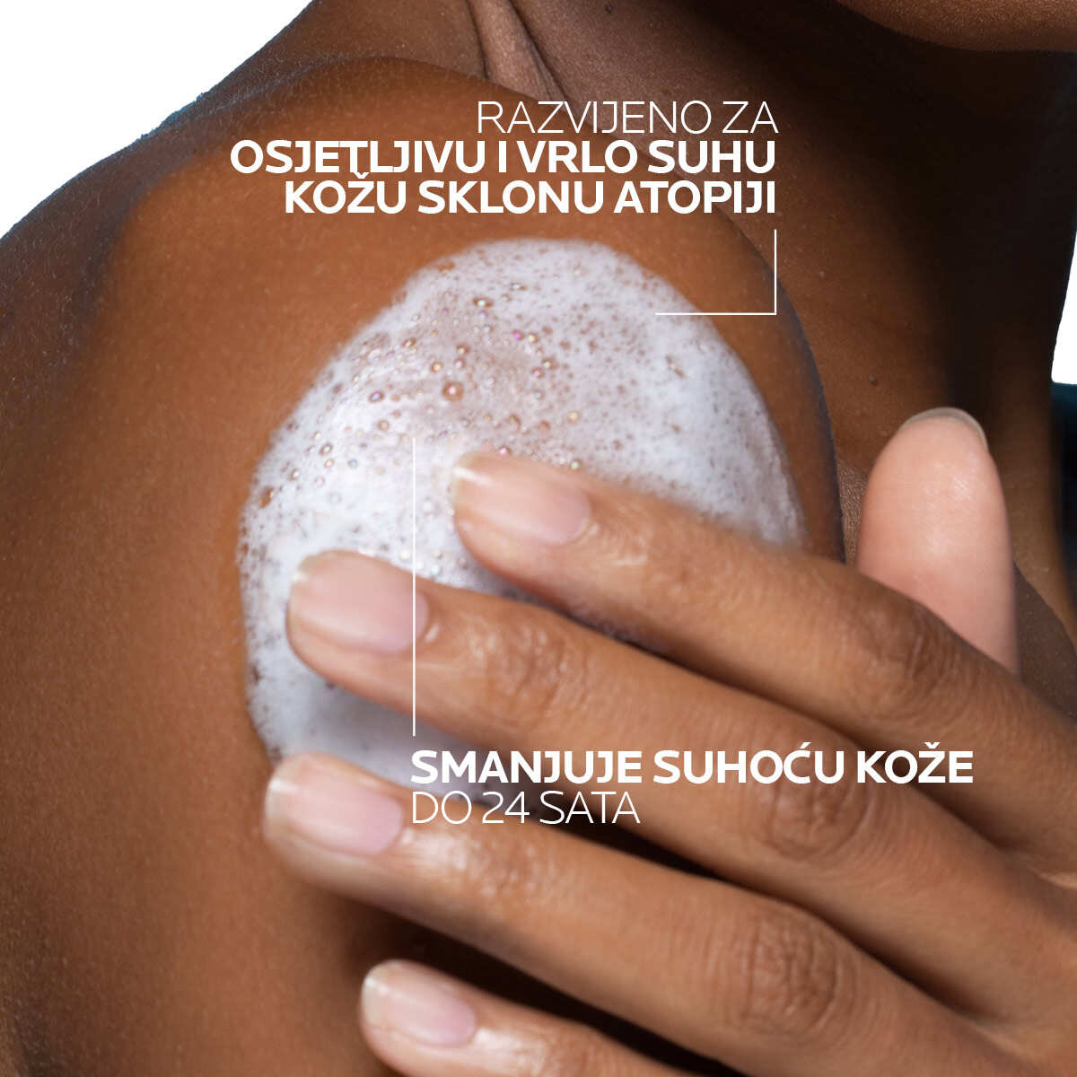 • Nježno čisti vrlo suhu i osjetljivu kožu bez trljanja.